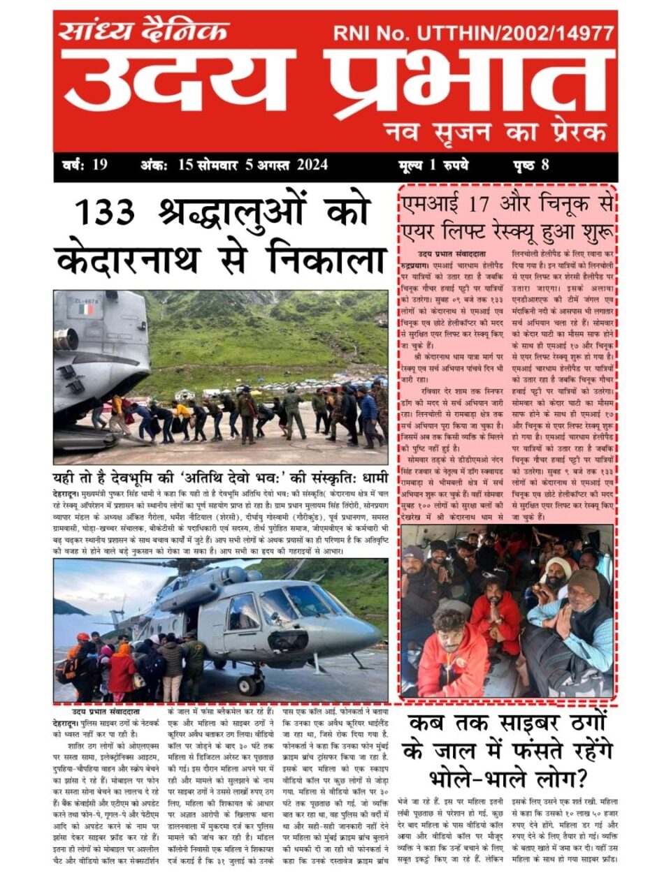 accidentuttrakhandweatherउत्तर प्रदेशएजुकेशनएंटरटेनमेंटक्राइमखेलदुनियादेशदेहरादूनधर्मराजनीतिराज्य5 August 2024 Paper August 6, 20240163 Quick Share