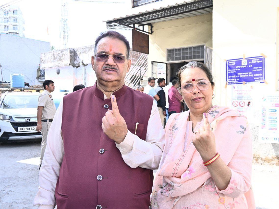 कैबिनेट मंत्री ने पत्नी संग किया मताधिकार का प्रयोग