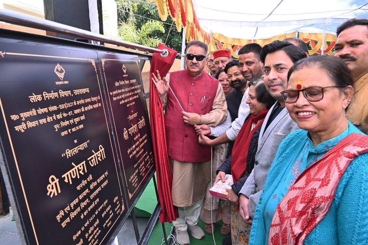 देहरादून, 15 मार्च। कैबिनेट मंत्री गणेश जोशी ने शुक्रवार को हाथीबड़कला स्थित कैंप कार्यालय में मसूरी विधानसभा क्षेत्र के अन्तर्गत दून विहार पेयजल योजना, जाखन व विजय कॉलोनी वार्ड की सड़कें तथा विभिन्न स्थानों पर पार्क निर्माण के लिए रू.690.79 लाख की लागत से विभिन्न विकास योजनाओं का लोकार्पण एवं शिलान्यास किया गया। कैबिनेट मंत्री गणेश जोशी ने कहा विगत एक सप्ताह से लगातार मसूरी विधानसभा क्षेत्र के अंतर्गत अलग-अलग वार्डों कॉलोनियों में विभिन्न विभागों द्वारा स्वीकृत लाखों करोड़ों की विकास योजनाओं के लोकार्पण एवं शिलान्यास किया जा रहा है। उन्होंने कहा डबल इंजन की सरकार प्रधानमंत्री नरेन्द्र मोदी के सबका साथ सबका विकास सबका विश्वास और सबका प्रयास के ध्येय वाक्य के साथ कार्य कर रही है। मंत्री गणेश जोशी ने कहा केंद्र सरकार ने देश भर की तीन करोड़ बहिनों को लखपति दीदी बनाने का संकल्प लिया है। उन्होंने कहा प्रदेश सरकार ने वर्ष 2025 तक प्रदेश की सवा लाख बहिनों के लक्ष्य को बढ़ाकर 1.50 (डेड लाख) बहिनों को लखपति दीदी बनाने का संकल्प लिया है। उन्होंने कहा कांग्रेस सरकार में शिलान्यास होता था, लेकिन उसका लोकार्पण नहीं हो पाता था। कैबिनेट मंत्री गणेश जोशी ने कहा भाजपा की डबल इंजन की सरकार जिस विकास योजना का शिलान्यास करती है, उसका लोकार्पण भी करती है। उन्होंने कहा जिन विकास योजनाओं का अभी तक मसूरी विधानसभा क्षेत्र के अंतर्गत शिलान्यास किया गया है, उनका एक साल के भीतर लोकार्पण किया जाएगा। उन्होंने संबंधित कार्यदायी संस्था के अधिकारियों को निर्माण कार्यों में गुणवत्ता के साथ करने तथा निर्धारित समय पर निर्माण कार्य पूर्ण करने के निर्देश भी दिए। कैबिनेट मंत्री गणेश जोशी ने कहा प्रदेश में मुख्यमंत्री पुष्कर सिंह धामी के नेतृत्व में राज्य सरकार न केवल प्रदेश में मूलभूत सुविधाओं को सुदृढ़ बना रही है। बल्कि प्रदेशवासियों की आकांक्षाओं को पूर्ण कर एक सशक्त उत्तराखंड के निर्माण की दिशा में कार्य कर रही है। इन योजनाओं का किया गया लोकार्पण एवं शिलान्यास- दून विहार में रू.430.00 लाख की लागत से कॉलोनी की वितरण प्रणाली पेयजल योजना। मुख्यमंत्री घोषणा के अन्तर्गत जनपद देहरादून के विधानसभा क्षेत्र मसूरी के अन्तर्गत रु.103.74 लाख की लागत से वार्ड नं0-07 जाखन की आंतरिक सड़कों का पुनः निर्माण कार्य। मुख्यमंत्री घोषणा के अन्तर्गत जनपद देहरादून के विधानसभा क्षेत्र मसूरी के अन्तर्गत रू. 46.21 लाख की लागत से वार्ड नं0-11 विजय कॉलोनी की आंतरिक सड़कों एवं नालियों का निर्माण कार्य।शिप्रा विहार सैन्ट्रल पार्क में रू.24.99 लाख की लागत से आरबोरीकल्चर / सौन्दर्यारण का कार्य। शौर्य स्थल (वार मैमोरियल) चिड़बाग में रू.24.5 लाख