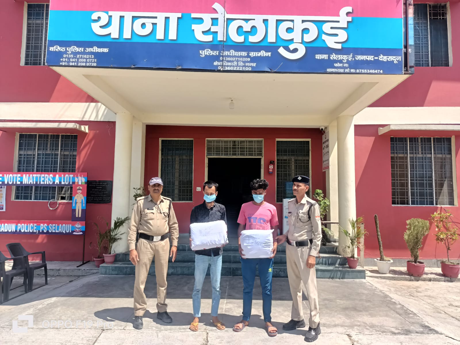 थाना सेलाकुई पुलिस द्वारा चेकिंग के दौरान सेलाकुई क्षेत्र से 02 अभियुक्तों आशीष कुमार पुत्र सुरेश प्रसाद यादव निवासी चंदन पट्टी, थाना गमरिया, जिला मधेपुरा, बिहार हाल निवासी प्रगति विहार, सेलाकुई, उम्र 24 वर्षव दीपक कुमार पुत्र राम सिंह निवासी सिंघनीवाला, थाना सहसपुर उम्र 25 वर्ष को अवैध मादक पदार्थो के साथ गिरफ्तार किया गया, जिनकी तलाशी लेने पर अभियुक्तों के पास से 07 किलो 25 ग्राम अवैध गांजा बरामद हुआ। दोनों अभियुक्तों के विरुद्ध थाना सेलाकुई पर एनडीपीएस एक्ट की धारा 8/20/60 के अंतर्गत अभियोग पंजीकृत किया गया है, जिन्हे नियमानुसार न्यायालय के समक्ष पेश किया जा रहा है। पूछताछ में अभियुक्तो द्वारा बताया गया कि वह बिहार के रहने वाले हैं तथा वहां से माल को कम दामों पर खरीद कर इंडस्ट्रियल एरिया तथा शैक्षिक संस्थानों में अध्ययनरत छात्रों को अधिक दामों बेच देते है, जिससे उन्हें काफी मुनाफा हो जाता है।