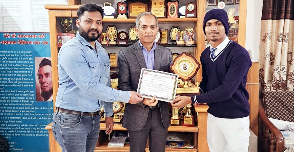 फरीदाबाद। राजकीय आदर्श वरिष्ठ माध्यमिक विद्यालय सराय ख्वाजा फरीदाबाद में प्राचार्य रविंद्र कुमार मनचंदा ने विद्यालय की ग्यारहवीं कक्षा के छात्र गुलशन को विभिन्न राज्य स्तरीय प्रतियोगिताओं में उत्कृष्ट प्रदर्शन के लिए सम्मानित किया। विद्यालय के छात्र गुलशन को सम्मानित करते हुए प्रधानाचार्य मनचंदा ने कहा कि शिक्षा विभाग द्वारा आयोजित की जाने वाली प्रतियोगिताओं एवम गतिविधियों में सभी विद्यार्थियों को प्रतिभागिता के लिए तैयार किया जाता है विद्यालय स्तर पर प्रथम रहने वाले छात्र छात्राओं को ब्लॉक लेवल तथा इसी प्रकार से जिला एवम राज्य स्तरीय प्रतियोगिताओं में प्रतिभागिता का अवसर मिलता है। छात्र गुलशन को राज्य स्तरीय प्रतियोगिता में एकल नृत्य में प्रथम पुरस्कार प्राप्त करने पर विद्यालय परिसर मे आज स्मृति चिन्ह एवम प्रशस्ति पत्र प्रदान किया जाता है। गुलशन को प्राचार्य रविंद्र कुमार मनचंदा, सुशीला बेनीवाल और प्राध्यापक पवन ने स्मृति चिन्ह और प्रशस्ति पत्र प्रदान कर सम्मानित व्यू किया। प्राचार्य और स्टाफ सदस्यों ने उत्कृष्ट प्रदर्शन करने वाले सभी विद्यार्थियों को सम्मानित किया।