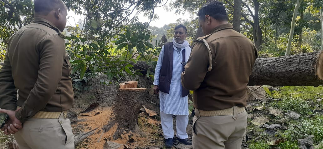 नगर के मोहल्ला मुस्लिम चैधरियन निवासी सपा विधायक नईम-उल-हसन के भाई मुजीबउल हसन पुत्र महमूदउल हसन ने थाने में प्रार्थना पत्र देकर बताया है कि उनका आम का बाग(Mango Garden) ठाकुरद्वारा रोड पर है. जिसमें सागौन के भी कुछ कीमती पेड़ खड़े हुए हैं. रविवार(Sunday) की रात को किसी ने उनके आम के बाग में खड़े हुए सागौन के पांच पेड़ काट दिए. जिसकी शिकायत मुजीब-उल-हसन ने थाने में की है. बताया जा रहा है कि इन पेड़ों की कीमत करीब डेढ़ लाख रुपए है.