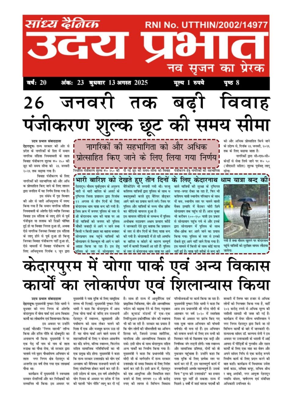 accidentBreaking NewsEntertainmentFeatureduttrakhandweatherउत्तर प्रदेशएजुकेशनक्राइमखेलदुनियादेशदेहरादूनधर्मराजनीतिराज्यसुर्खियांहेल्थ13 August, 2025..Newspaper August 14, 20250158 Quick Share