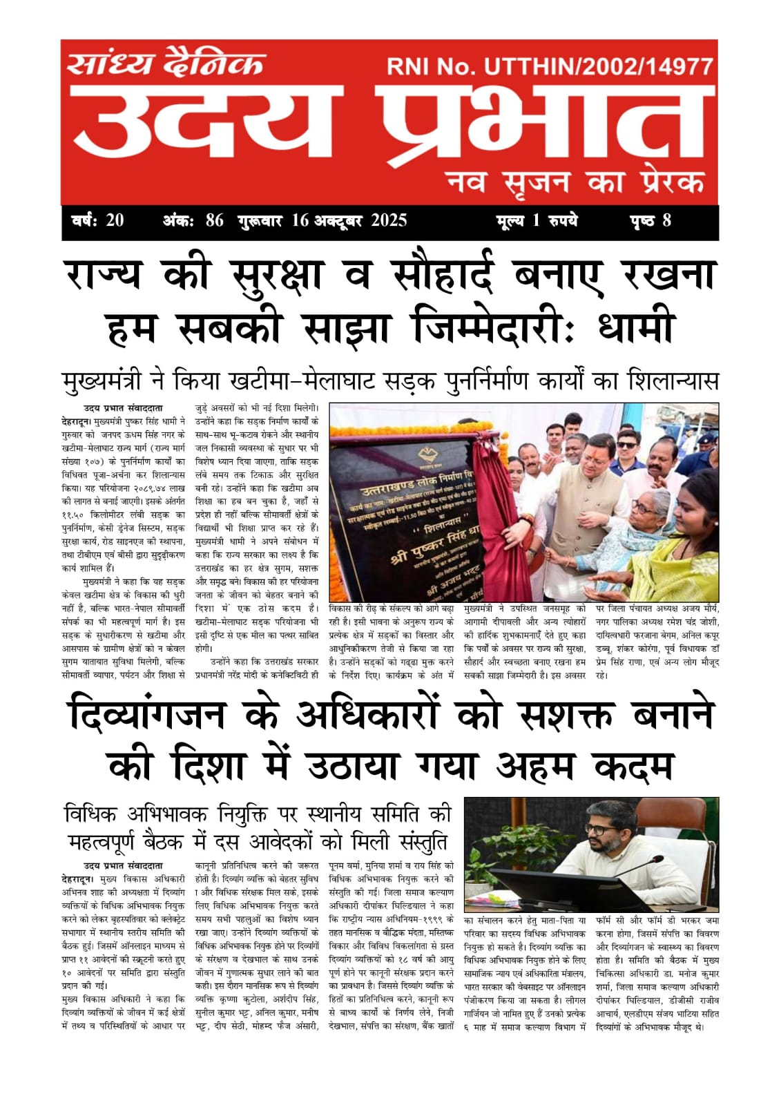 accidentBreaking NewsEntertainmentFashionFeaturedTraveluttrakhandweatherउत्तर प्रदेशएजुकेशनएंटरटेनमेंटक्राइमखेलदुनियादेशदेहरादूनधर्मराजनीतिराज्यसुर्खियांहेल्थ16 October, 2025…Newspaper October 17, 20250111 Quick Share