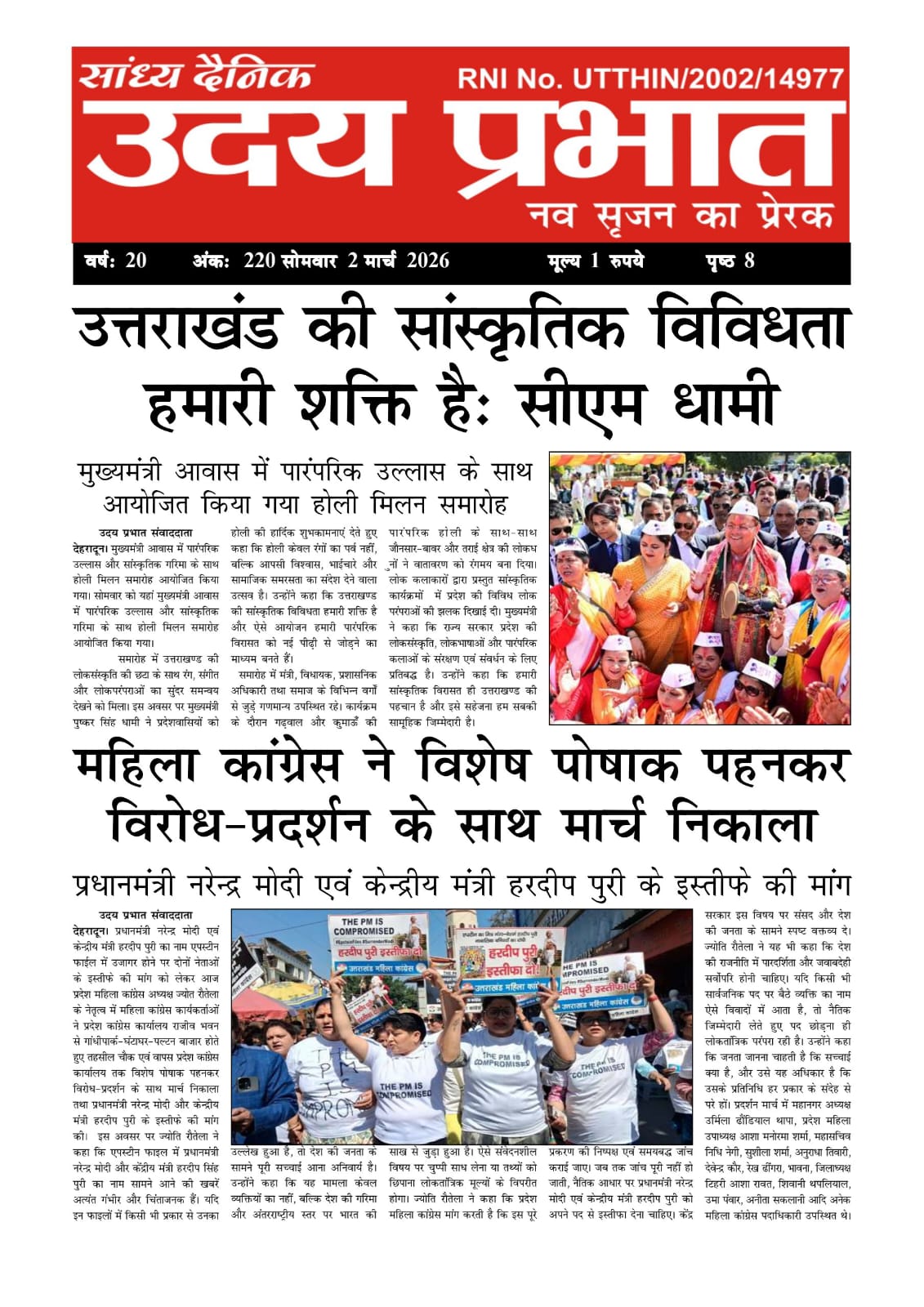 accidentBreaking NewsEntertainmentFashionuttrakhandweatherउत्तर प्रदेशएजुकेशनक्राइमखेलदुनियादेशदेहरादूनधर्मराजनीतिराज्यसुर्खियांहेल्थ2 March 2026…Newspaper March 2, 2026020 Quick Share