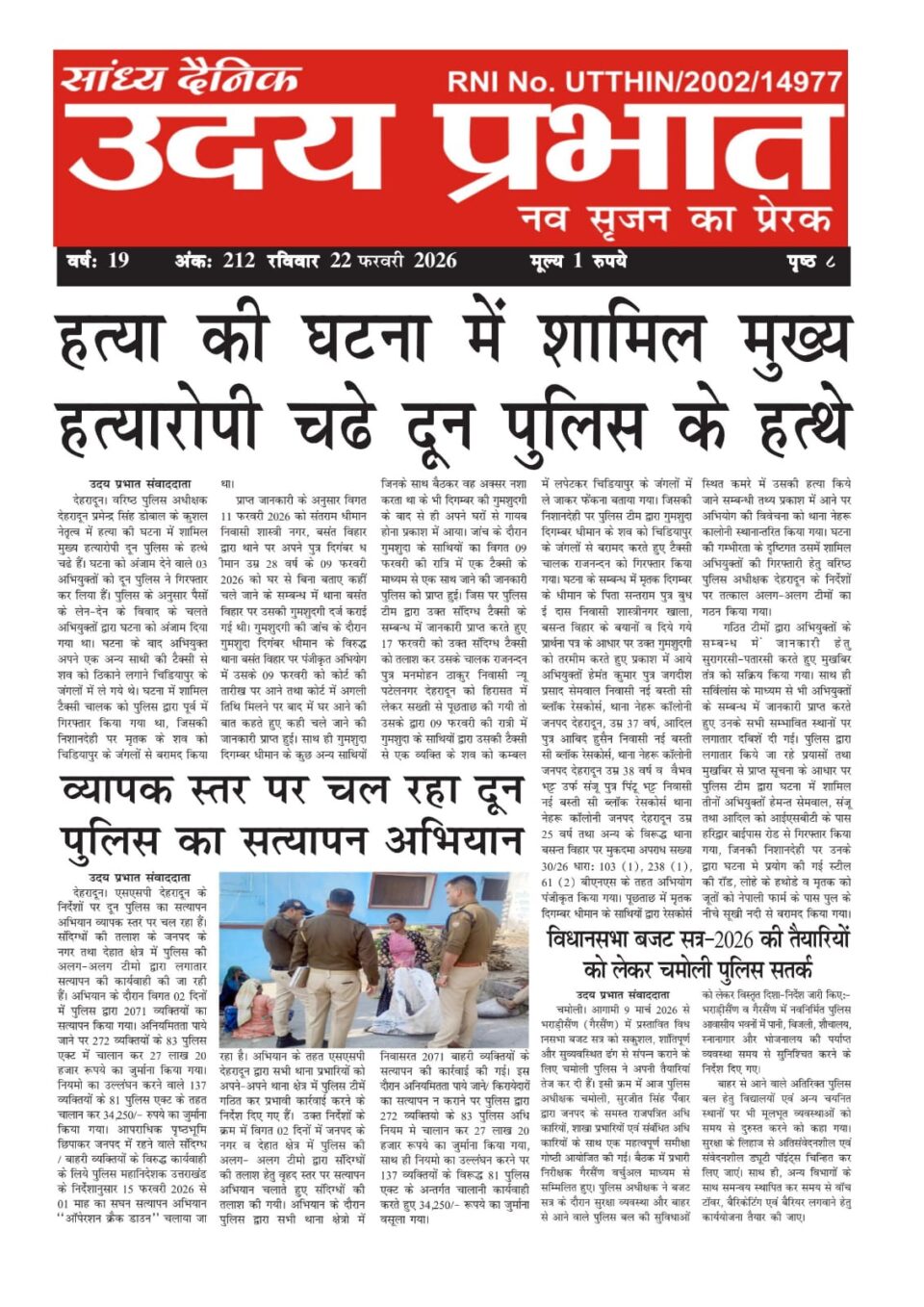 accidentBreaking NewsEntertainmentFashionTraveluttrakhandweatherउत्तर प्रदेशएंटरटेनमेंटक्राइमखेलदुनियादेशदेहरादूनधर्मराजनीतिराज्यसुर्खियांहेल्थ22 February 2026…Newspaper February 23, 2026024 Quick Share