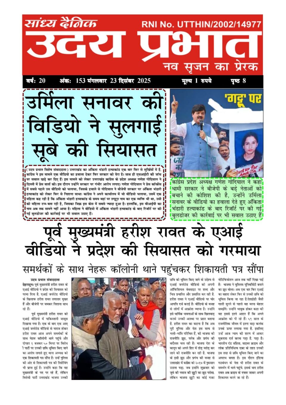 accidentBreaking NewsEntertainmentFashionTraveluttrakhandउत्तर प्रदेशएजुकेशनक्राइमखेलदुनियादेशदेहरादूनधर्मराजनीतिराज्यसुर्खियांहेल्थ23 December, 2025…Newspaper December 23, 2025064 Quick Share