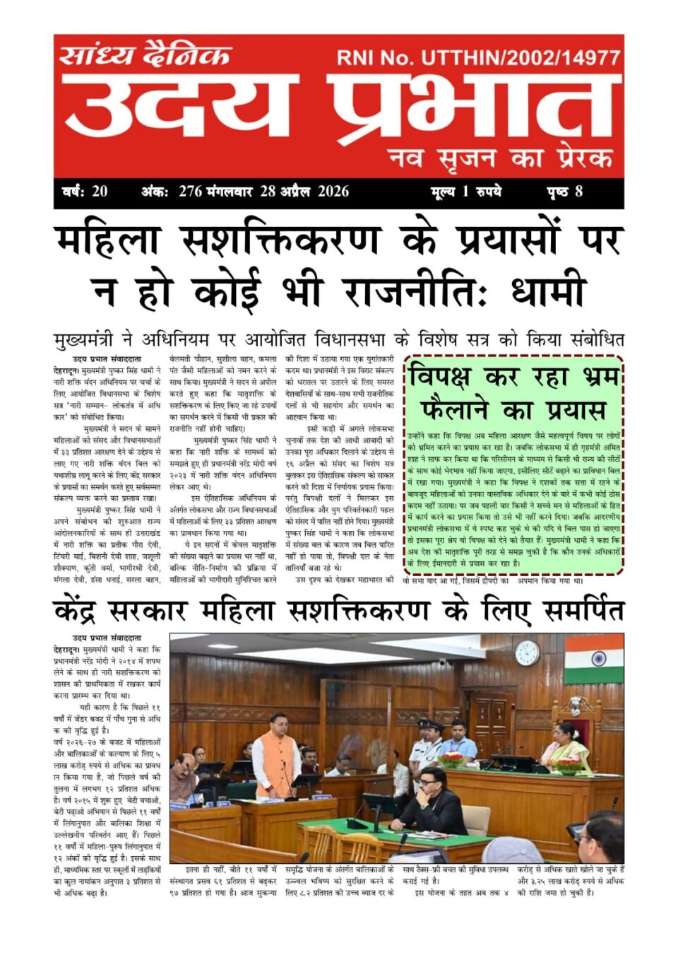 accidentBreaking NewsEntertainmentFashionFeaturedTraveluttrakhandweatherउत्तर प्रदेशएजुकेशनएंटरटेनमेंटक्राइमखेलदुनियादेशदेहरादूनधर्मराजनीतिराज्यसुर्खियांहेल्थ28 April 2026… Newspaper April 28, 202607 Quick Share
