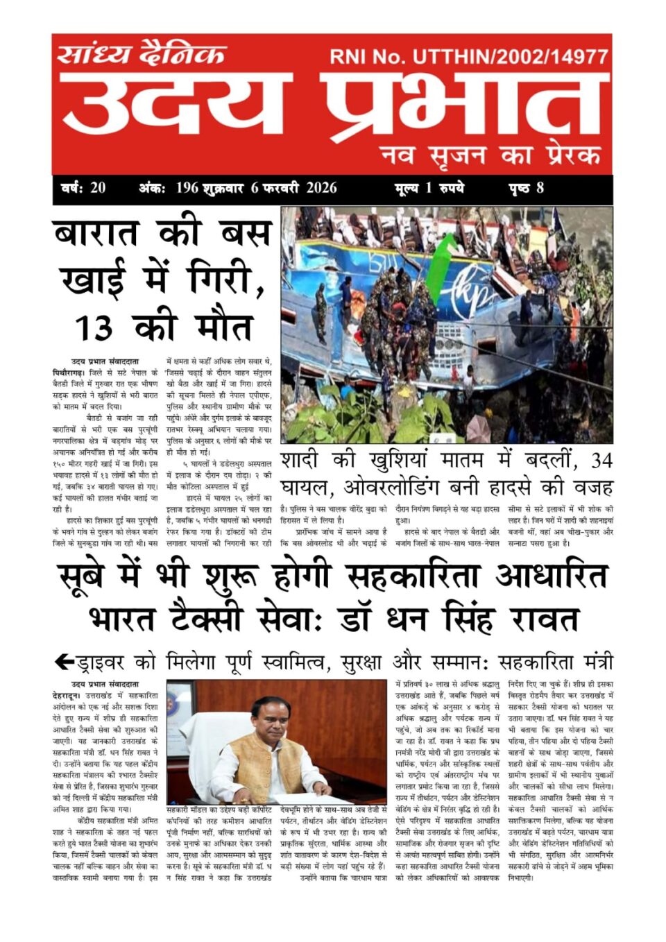 accidentBreaking NewsEntertainmentFashionuttrakhandweatherउत्तर प्रदेशएजुकेशनएंटरटेनमेंटखेलदुनियादेशदेहरादूनधर्मराजनीतिराज्यसुर्खियांहेल्थ6 February, 2026…Newspaper February 7, 202606 Quick Share
