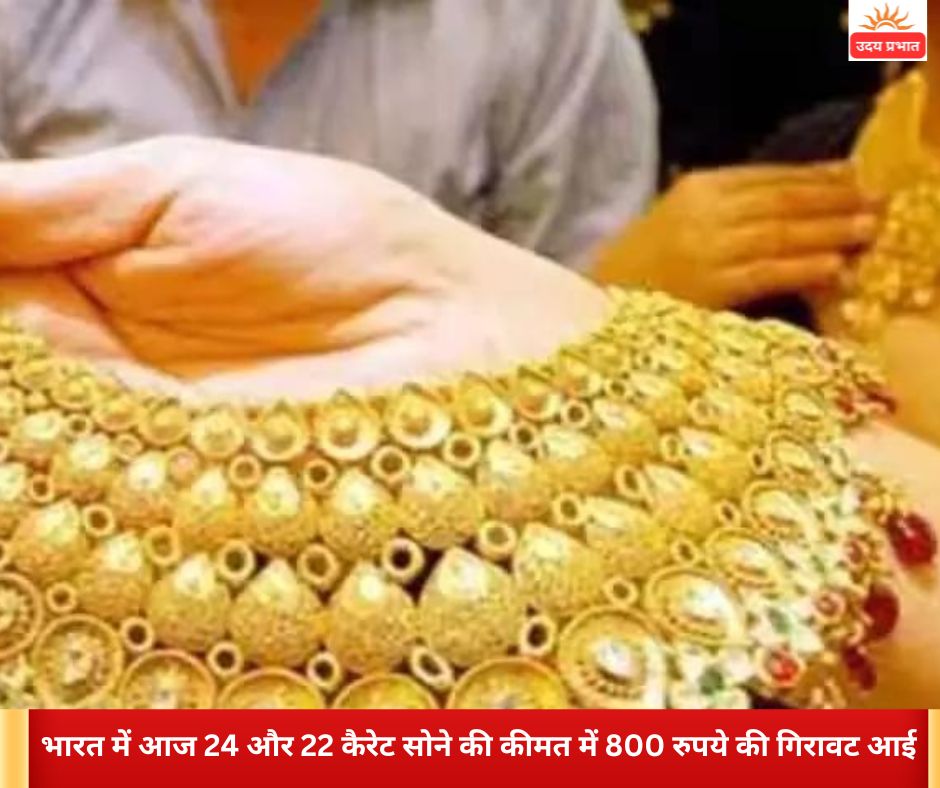 भारत में आज 24 और 22 कैरेट सोने की कीमत में 800 रुपये की गिरावट आई