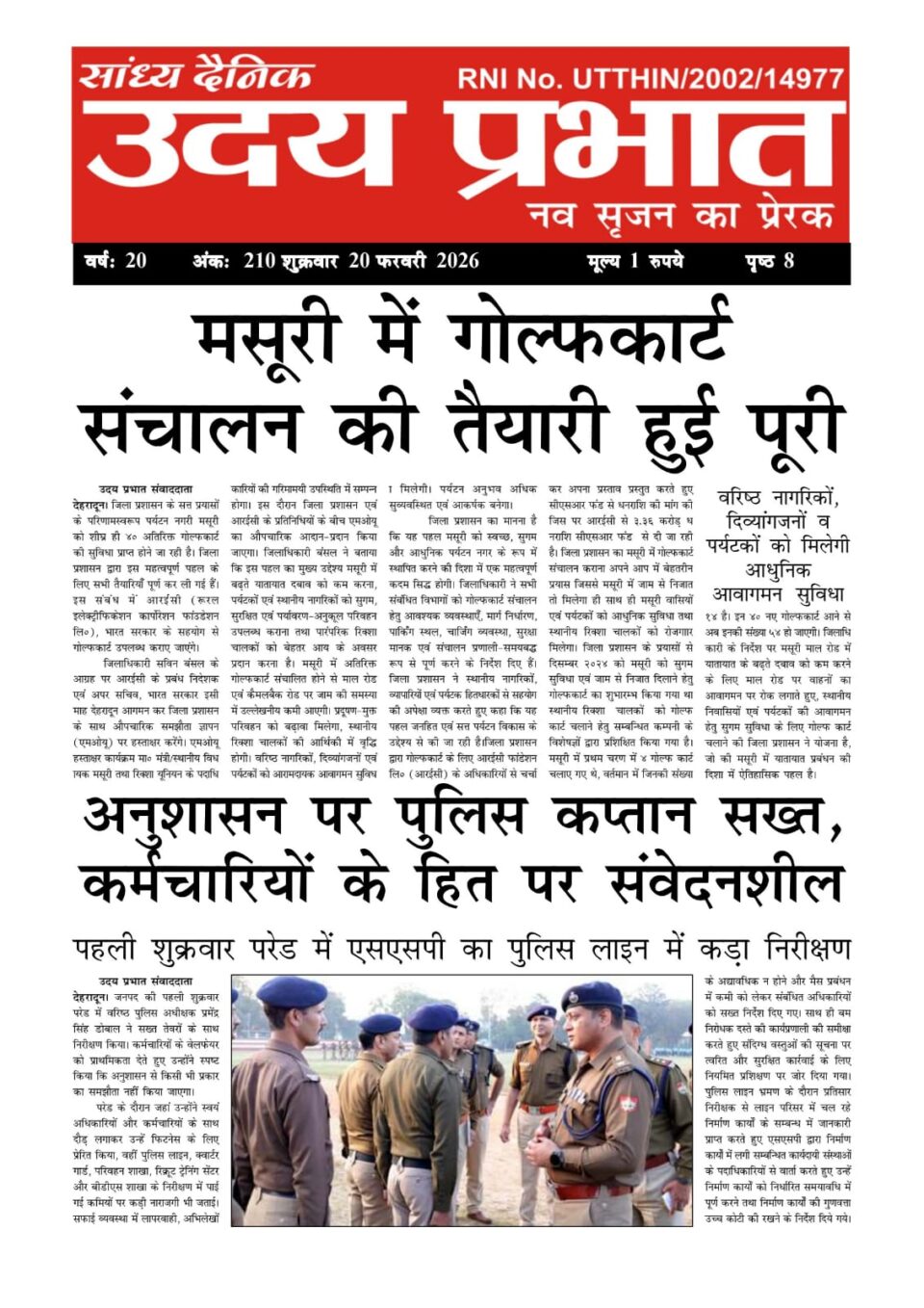 accidentBreaking NewsEntertainmentFashionuttrakhandweatherउत्तर प्रदेशएजुकेशनक्राइमखेलदुनियादेशदेहरादूनधर्मराजनीतिराज्यसुर्खियांहेल्थ20 February 2026…Newspaper February 20, 2026052 Quick Share
