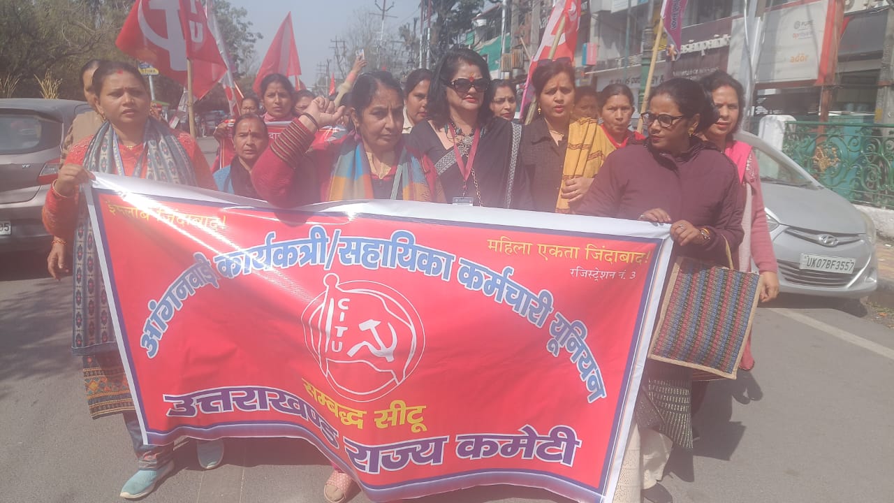आज दिनांक 20.02.2024 को आगंनबाड़ी महिलाओं नें देहरादून सचिवालय का घेराव किया तथा जमकर सरकार के खिलाफ नारेबाजी की। आंगनबाड़ी महिलाओं कि मुख्य मांगों में उनका मानदेय बढ़ाये जाने को लेकर है एवं साथ ही उनका नियमितीकरण करने की भी उनकी मुख्य मांग है। सचिवालय का घेराव आंगनबाड़ी महिलाओं के एक बड़े हुजुम नें किया जिसमें 400-500 महिलाओं नें शिरकत की। आंगनबाड़ी महिलाओं का कहना है कि यदि सरकार उनकी मांग अगली कैबिनेट की बैठक में नहीं करती है तो वह उग्र आंदोलन करने को मजबूर होंगी तथा इसका खामियाजा भाजपा सरकार को आने वाले लोकसभा चुनाव में भुगतना पड़ेगा, आंगनबाड़ी महिलाओं पूर्ण रूप से कार्य बहिष्कार करेंगी तथा वह एवं उनके परिवार का कोई भी सदस्य आने वाले लोकसभा चुनाव में वोट नहीं करेगा।