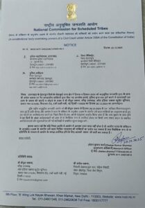 राष्ट्रीय अनुसूचित जनजाति आयोग ने भी जारी किया नोटिस: