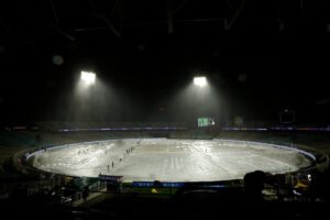 मौसम विभाग की चेतावनी सही साबित हुई, क्योंकि मैच शुरू होने के कुछ ही देर बाद बारिश ने खेल में बाधा डाल दी। बारिश आने से पहले केवल 3.4 ओवर का खेल ही हो सका था।
