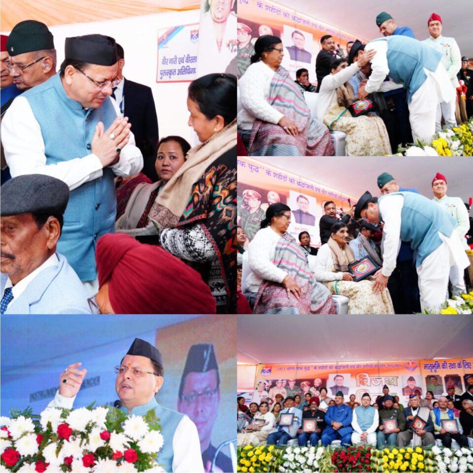 मुख्यमंत्री श्री पुष्कर सिंह धामी ने कहा कि इस युद्ध में पाकिस्तान के लगभग एक लाख सैनिकों ने 16 दिसंबर 1971 को हमारी सेना के समक्ष आत्मसमर्पण किया, जो दुनिया के सैन्य इतिहास में एक अद्वितीय घटना के रूप में दर्ज है। उस युद्ध में लगभग 39 सौ भारतीय सैनिक वीरगति को प्राप्त हुए, जिनमें वीरभूमि उत्तराखंड के 255 बहादुर सपूत भी शामिल थे। तब हमारे प्रदेश के 74 सैनिकों को अपने अदम्य साहस और शौर्य के लिए विभिन्न वीरता पदकों से सम्मानित भी किया गया था।
