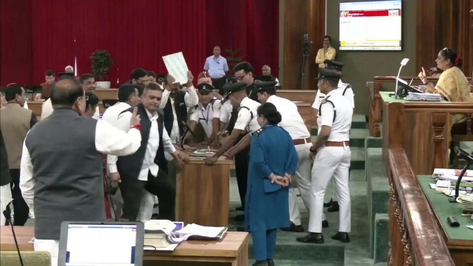 विपक्षी विधायक टेबल तक जा पहुंचे और गुस्से में माइक तक उखाड़ दिया। सदन की गरिमा भंग होते देख स्पीकर के सुरक्षा कर्मियों को बीच-बचाव करना पड़ा।