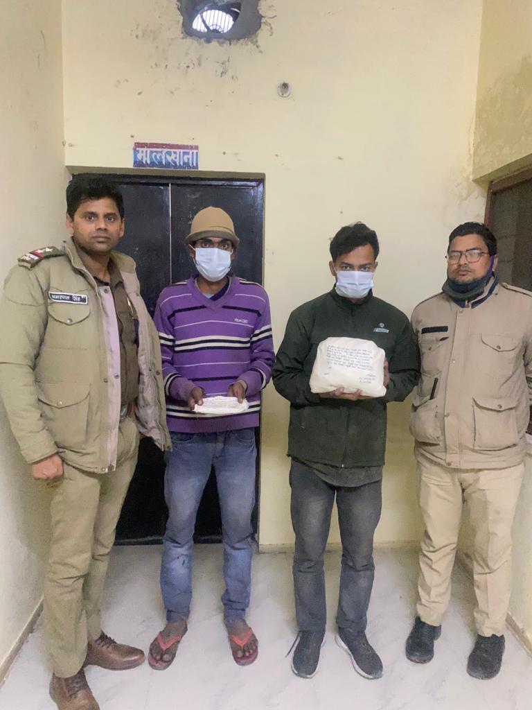हल्द्वानी | पंकज भट्ट वरिष्ठ पुलिस अधीक्षक नैनीताल के निर्देशानुसार जनपद नैनीताल पुलिस द्वारा अवैध मादक पदार्थों के क्रय-विक्रय के विरुद्ध अभियान प्रचलित है। इसी क्रम में अपर पुलिस अधीक्षक हल्द्वानी हरबंस सिंह के दिशा निर्देशन, क्षेत्राधिकारी हल्द्वानी भूपेंद्र सिंह धोनी के पर्यवेक्षण तथा थानाध्यक्ष काठगोदाम प्रमोद पाठक के नेतृत्व उप निरीक्षक अमरपाल चौकी प्रभारी मल्ला काठगोदाम द्वारा दिनांक 27/12/2021 की रात्रि गश्त/सघन चेकिंग के दौरान चरस तस्करी की सूचना पर कॉल टैक्स तिराहा के पास कैनाल रोड काठगोदाम के पास दो व्यक्तियों को संदिग्ध प्रतीत होने पर उनकी चेकिंग की गई तो उनके कब्जे से कुल 1 किलो 940 ग्राम अवैध चरस बरामद की गई | दोनों चरस तस्कर थाना भीमताल क्षेत्र के स्थानीय निवासी है।
