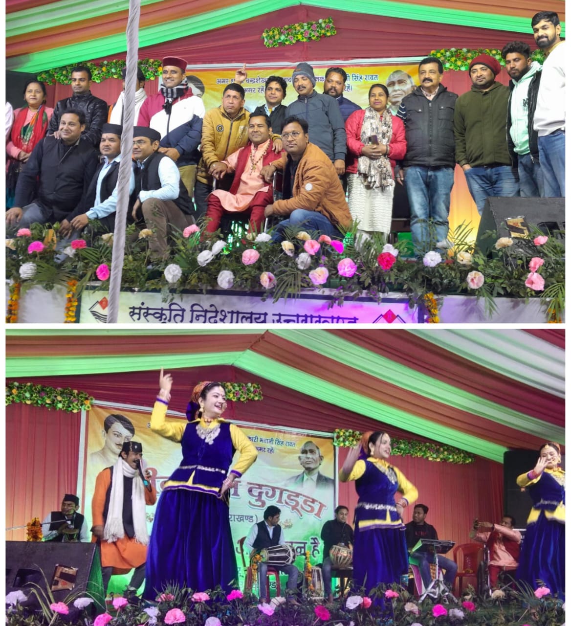 कोटद्वार। दुगड़डा ब्लॉक के अंतर्गत नगर पालिका परिषद द्वारा आयोजित शहीद मेले में सन्देश कला सांस्कृतिक एवं सामाजिक संस्था के लोकगायक संजय सिंह रावत व साथी कलाकारों तथा संस्कृति विभाग देहरादून द्वारा दी गई लोकगीतों व लोकनृत्यों की शानदार प्रस्तुतियां दी। कार्यक्रम का शुभारम्भ पूर्व प्रधानाचार्य राम आवतार गर्ग द्वारा दीप प्रज्वलित कर किया गया। तत्पश्चात उत्तराखंड के प्रसिद्ध लोकगायक संजय सिंह रावत ने “बाबा महाबगढ़ बल तेरी चौदिशों ह्वे हाम” से कार्यक्रम का शुभारम्भ किया गया। उसके बाद पौसतु का छूमा मेरी भाग्यानी बो, मैं तो नहीं जाऊंगा नेपाल, ब्वाडा ब्या ब्या ब्या, कन मो मॉर्डन जमनू ऐगे व पौड़ी की बांद च जैसी प्रस्तुतियां ने दर्शकों को झूमने पर मजबूर कर दिया। गायिका संजना गुसाईं ने मुल मुल केकु हैसनी छै तू, व योगेन्द्र के द्वारा गाए गीतों ने दर्शकों को मंत्रमुग्ध कर दिया। कार्यक्रम के मुख्य अतिथि रामवतार गर्ग ने कहा कि शहीद मेले में आयोजित कार्यक्रम में गायक संजय सिंह रावत व साथी कलाकारों द्वारा शानदार प्रस्तुतियां दी गई, साथ ही जनता को मनोरंजन के साथ-साथ जागरूक भी किया गया। इसके लिए संजय सिंह रावत की टीम को बहुत-बहुत बधाई देते हुए उज्जवल भविष्य की कामना करता हूं। संजय सिंह रावत के द्वारा जनहित में गाए गए गीत मूल निवास व भू कानून पर आधारित गीत को भी खूब सराहा गया। संजय सिंह रावत के संगीत निर्देशन भूपेन्द्र, शोरभ शोरियाल, दीपक पंवार, राकेश राज व ऋषि ध्यानी ने कार्यक्रम में संगत दी। इस अवसर पर मंडल अध्यक्ष शौरभ गुप्ता, ई ओ गोवर्धन जोशी, संजीव कपूर, प्रदीप बडोला, दीपक ध्यानी गिरीश गौड़ आदि मौजूद रहे।