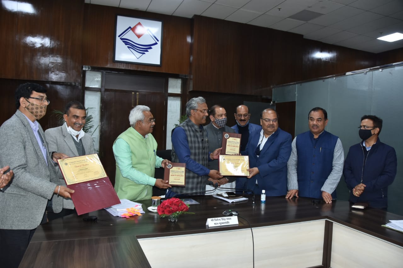 देहरादून|  उत्तराखण्ड (Uttarakhand) को दिये गये 18 वें सीएसआई एसआईजी ई-गवर्नेस अवार्ड 2020 (SIG E-Governance Award 2020) बुधवार को सचिवालय (Secretariat) में मुख्यमंत्री को सौंपा गया। यह अवार्ड उत्तराखण्ड को राज्यों की श्रेणी में ई-मंत्रीमंडल के लिए दिया गया है। उत्तराखण्ड को यह पुरस्कार प्राप्त होने पर मुख्यमंत्री त्रिवेन्द्र सिंह रावत (CM Trivendra Singh Rawat) ने गोपन विभाग एवं एनआईसी (NIC) के अधिकारियों को बधाई देते हुए कहा कि गुड गवर्नेंस के लिए ई-गवर्नेस बहुत जरूर है। ई-कैबिनेट (E-Cabinet), ई-ऑफिस (E-Office), ई-डिस्ट्रिक्ट (E-District), सीएम हेल्पलाईन (CM Helpline) आदि महत्वपूर्ण पहल हैं। कोशिश है कि लोगों को सूचना प्रौद्योगिकी का अधिक से अधिक लाभ मिले। उन्होंने कहा कि कार्यालयों में सूचना तकनीक के प्रयोग से प्रशासनिक कार्यकुशलता (Administrative Functioning) में सुधार होगा।