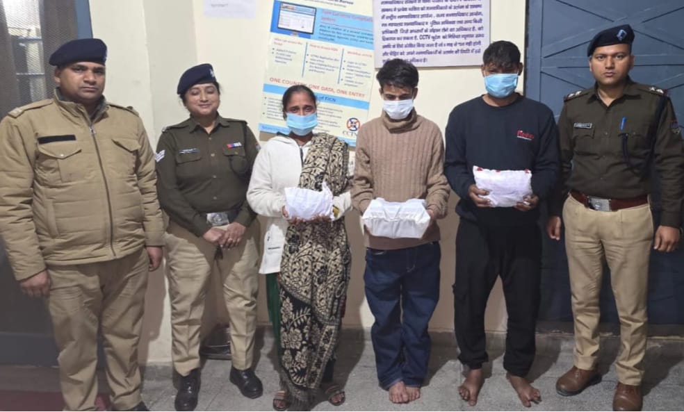 रविवार को रायपुर पुलिस को गोपनीय माध्यम से थाना क्षेत्रान्तर्गत सपेरा बस्ती के कुछ परिवारों के विगत कुछ समय से मादक पदार्थो की तस्करी में लिप्त होने तथा उक्त नशा तस्करों के पास काफी मात्रा में अवैध मादक पदार्थ होने की सूचना मिली। प्राप्त सूचना पर पुलिस टीम द्वारा सपेरा बस्ती में एक घर में दबिश दी गई, तो मौके से भारी मात्रा में अवैध चरस के साथ 03 नशा तस्करों (02 पुरूष, 01 महिला) 1- किरन पत्नी राम 2 – विकास सिह पुत्र कृष्ण सिह 3 – अर्जुन कुमार पुत्र रमेश कुमार को गिरफ्तार किया गया। अभियुक्तों के कब्जे से पुलिस टीम द्वारा कुल 01 किलो 58 ग्राम चरस (अन्तराष्ट्रीय कीमत 02 लाख) बरामद की गई। अभियुक्तों के विरुद्ध थाना रायपुर में मु0अ0स0 – 17/2025 धारा 8/20/27ए/29/60 NDPS ACT के अंतर्गत अभियोग पंजीकृत किया गया है।
