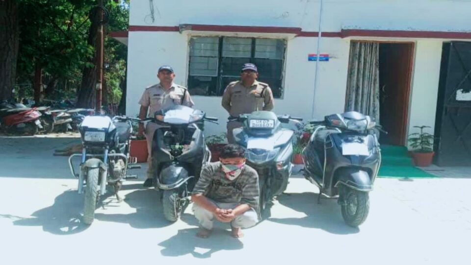 पुलिस टीम द्वारा बिना नंबर की मोटरसाइकिल के संबंध में पूछताछ करने पर युवक ने मोटरसाइकिल को 6 मार्च को शास्त्रीनगर खाला से चोरी करना व मोहित नगर, बल्लीवाला चौक और डालनवाला क्षेत्र से भी वाहन चोरी की घटनाओं को स्वीकार किया. जिसकी बताई जगह पर पुलिस टीम ने चाय बागान खंडहर के अंदर से चोरी की 3 स्कूटी को बरामद किया.