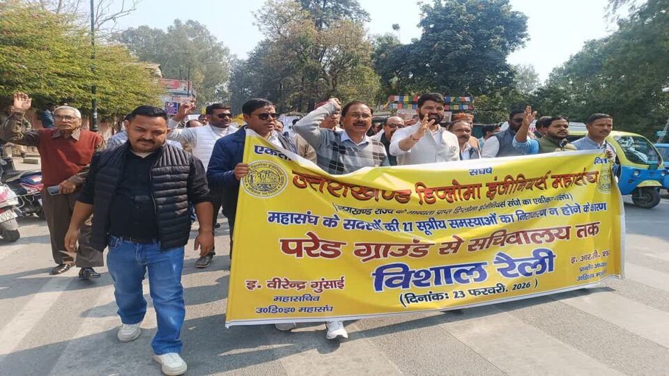 देहरादून: उत्तराखंड में लंबित मांगों को लेकर डिप्लोमा इंजीनियर्स महासंघ ने सोमवार को राजधानी में शक्ति प्रदर्शन किया। गढ़वाल और कुमाऊं मंडलों से बड़ी संख्या में पहुंचे अभियंताओं ने रैली निकालते हुए सचिवालय की ओर कूच किया। हालांकि पुलिस ने बैरिकेडिंग कर प्रदर्शनकारियों को सचिवालय पहुंचने से पहले ही रोक दिया।