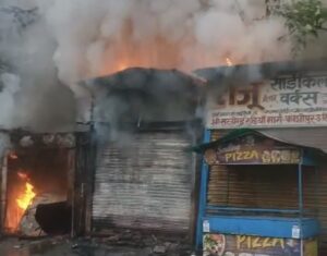 रुद्रपुर: उत्तराखंड के काशीपुर शहर में शनिवार सुबह एक भीषण अग्निकांड की घटना सामने आई, जिससे इलाके में हड़कंप मच गया। महाराणा प्रताप चौक के समीप अचानक लगी आग ने कुछ ही समय में विकराल रूप धारण कर लिया और तीन दुकानों को अपनी चपेट में ले लिया। इस हादसे में दुकानों में रखा लाखों रुपये का सामान जलकर पूरी तरह राख हो गया।