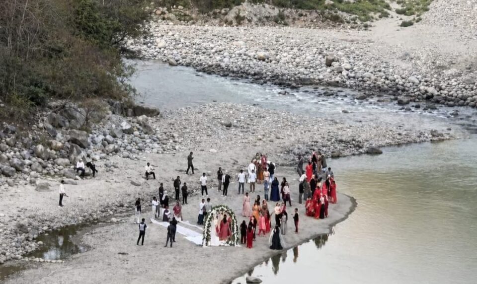 अल्मोड़ा: उत्तराखंड के अल्मोड़ा जिले के मर्चूला क्षेत्र में एक अनोखा और विवादित मामला सामने आया है, जहां श्मशान घाट पर विवाह समारोह आयोजित किए जाने का वीडियो सोशल मीडिया पर तेजी से वायरल हो रहा है। रामगंगा और बदनगढ़ नदी के संगम पर स्थित इस अंत्येष्टि स्थल पर शादी की रस्में निभाए जाने से स्थानीय लोगों में नाराजगी और हैरानी दोनों देखी जा रही है।